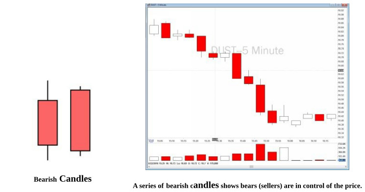 A series of bearish candles shows bears (sellers) are in control of the price.